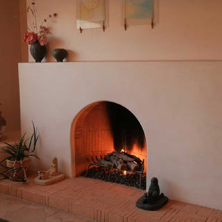 Glowing fireplace embers, steam swirling off spiced tea, cool night air weaving through lace drapes.